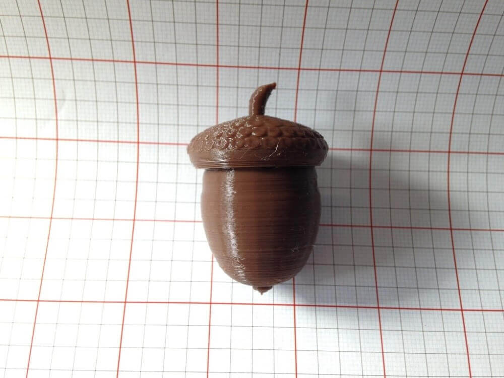 Die hier präsentierte Eichel können Sie beispielsweise zum Dekorieren von Anrichten, Schränken und Schalen verwenden. Besonders schön kommt sie zur Geltung, wenn sie mehrere Exemplare davon drucken und diese in einer kleinen Schale, vielleicht „garniert“ mit ein paar Tannenzweigen, aufstellen. Auch für die Gestaltung von herbstlichen Türkränzen eignet sie sich gut.