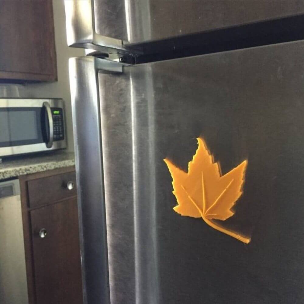 Kühlschrankmagneten liegen schon längere Zeit voll im Trend. Warum also nicht mal selbst einen herstellen? Das dies ganz einfach möglich ist, zeigt das hier vorgestellte Beispiel. Mit diesem 3D-gedruckten Blatt können Sie am Kühlschrank Notiz- und andere Zettel anbringen. Für die Fertigung wurde im Übrigen das FDM-Verfahren verwendet. Gestalten Sie die Blatt-Magnete in unterschiedlichen Farben, so kann beispielsweise für jedes Familienmitglied ein Farbton ausgewählt werden. Vielleicht ist es auch möglich, den Namen mit in die Datei zu integrieren und auszudrucken.