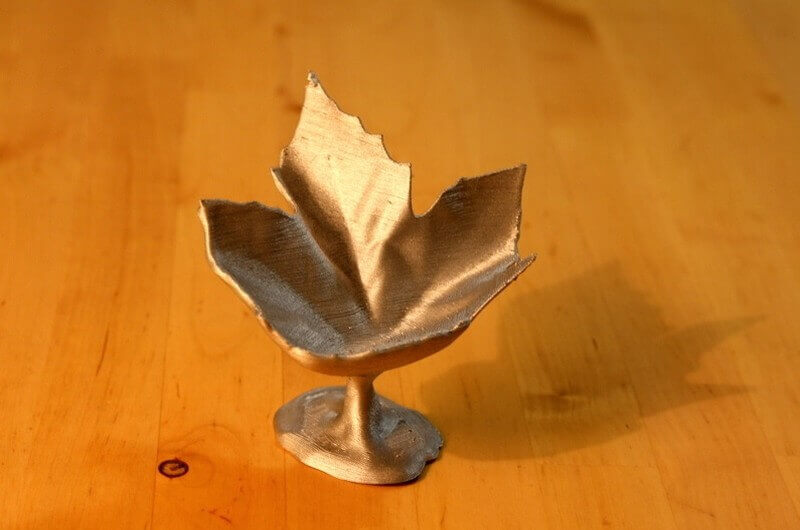 Ganz besonders interessant ist diese kleine Schüssel, die eine Blattform aufweist. Aufgrund ihrer geringen Größe lässt sie sich sicher auch als Eierbecher verwenden. Die Form wurde übrigens nicht am PC entworfen, als Grundlage diente ein ganz normales Blatt, dass der Maker mit seinem Kind auf dem Spielplatz gefunden hatte. Das Blatt scannte er eigenen Angaben zufolge mit dem Artec Eva 3D-Scanner ein und bearbeitete die Datei wahrscheinlich auch etwas. Natürlich können Sie dieses Objekt auch für die Dekoration Ihrer Wohnung oder als Geschenk an liebe Freunde und Verwandte nutzen.