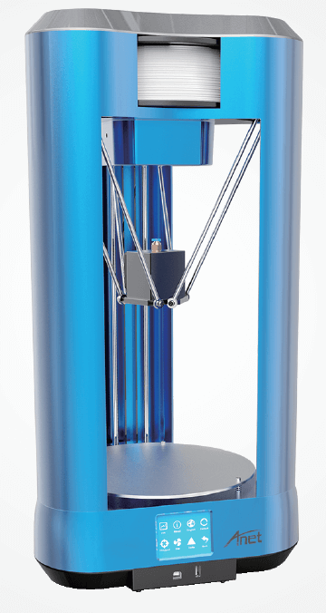 Der Anet E Time ist ein 3D-Drucker mit einer dreiachsigen Struktur, 2,8 Zoll Touchscreen mit 13 Sprachen, einer Wiederaufnahme der Druckarbeit nach dem Ausschalten und einer Filamentmangel-Erkennung. Der Bausatz besteht aus einem Kunststoff-Formrahmen in einem schönen Design. Im Juli 2017 kam der Anet A10 3D-Drucker auf den Markt, der eine hohe Druckgeschwindigkeit und Genauigkeit bietet. Es handelt sich um einen Bausatz, der erst zusammengebaut werden muss.
