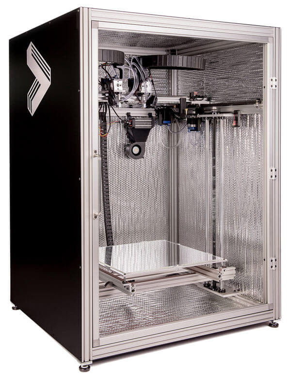 Die beiden Druckköpfe ermöglichen es Multi-Material-Objekte zu drucken oder alternativ zwei Objekte gleichzeitig. Wenn nur ein Extruder arbeitet, verweilt der andere auf der Seite, und stört bei dem Druckvorgang nicht. Der auf bis zu 70 Grad Celsius aufheizbare Bauraum ist abschließbar und das Druckbett lässt sich auf eine Temperatur von maximal 150 Grad Celsius einstellen.