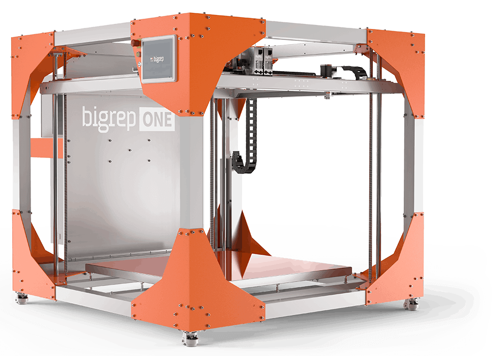 Der BigRep ONE hat ein Bauvolumen von 1005 x 1005 x 1005 mm. Er wurde überarbeitet und ist nun leichter und präziser und kann dem Kundenwunsch entsprechend angepasst werden. Anwender können zwischen Single-, Dual- oder Twin-Extruder-Setup wählen. Ein faserfertiger Power Extruder (PEX) ermöglicht es Nutzern, Teile aus fasergefüllten Materialien in 3D zu drucken. Der 3D-Drucker verfügt über Add-Ons und die Farbe des Druckers ist wählbar.