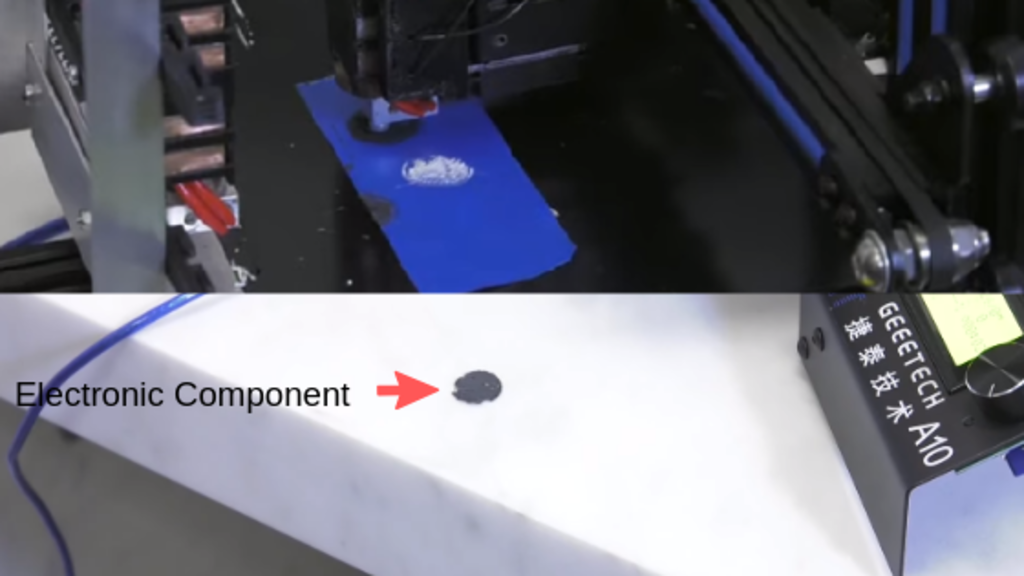 Bei der NASA entstand ein Drucksensor aus drei verschiedenen Materialien. Der Isolator befindet sich unten in grün. Der Widerstand ist in der Mitte und grau. und die Oberseite wurde in gelb gedruckt. Entworfen wurde das Ganze mit Tinkercad, einer Software zur Erstellung digitaler 3D-Designs. Die fertige Datei wird als .G-Datei bereitgestellt. Der 3D-Drucker wird damit angesteuert und unter Verwendung von 3D-Filamenten in unterschiedlichen Farben gedruckt. Die Herstellung der 3D-gedruckten Elektronikkomponente verlief mit dem 3D-Drucker von Geeetech erfolgreich.