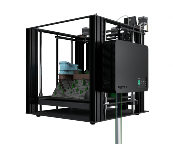 Palette 3 und Palette 3 Pro bieten Multi-Material-Druckfunktionen für ein vorhandenes System eines Drittanbieters. Es handelt sich dabei um die neuesten Versionen der Multimaterial-Filamentschalttechnologie des Unternehmens. Palette 3 und Palette 3 Pro ermöglichen basierend auf dem Palette X-System das Umschalten zwischen vier und acht Filamenten in Echtzeit. Sie werden als eigenständige Geräte zur Integration in FFF-3D-Drucker angeboten.