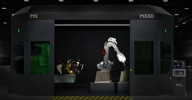 Das MX Metal AM System bietet die Möglichkeit, Teile zu produzieren, die bis zu fünf Tonnen oder mehr wiegen. Mit einem Bauraum von 600 x 150 x 350 cm und einem 8-Achsen-Robotersystem ist dieses Gerät ideal für Industriekunden aus den Bereichen Energie, Fertigung und Schifffahrt. Es ist vollständig integriert mit der neuesten Version von MX3D’s eigener Workflow-Software und Steuerungssystem MetalXL.