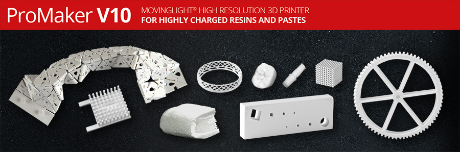 Der Prodways Movinglight V10 hat ein kompaktes Design und eine größere Plattform, kombiniert mit den Pluspunkten der Genauigkeit und Produktivität der Movinglight-Technologie. Gedruckt werden können hochviskose Materialien mit einem sehr hohen Keramikanteil. Das führt zu einer Keramikdichte von mehr als 99 Prozent.