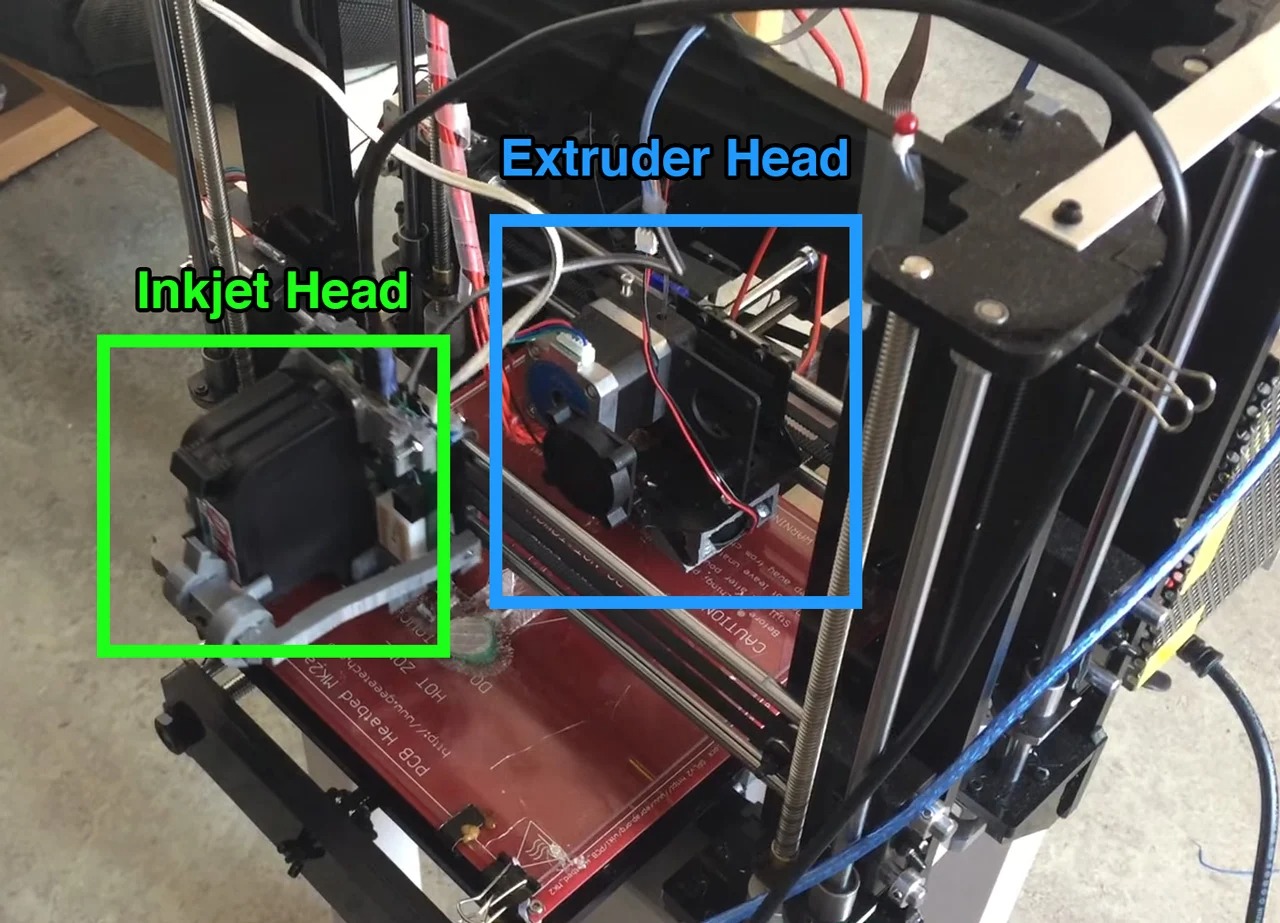 Die Funktionsweise eines FDM-3D-Druckers ist einfach erklärt. Schicht für Schicht wird auf einer Ebene Material aufgetragen. Stapeln sich diese Schichten, dann entsteht ein 3D-gedrucktes Objekt. Bei der Modifikation seines Prusa i3 3D-Druckers ergänzt der YouTuber einen separaten Farbdruckkopf. In seinem Video, das wir am Ende des Beitrags verlinkt haben, zeigt er, wie sich das Druckbett, nachdem der Filament-Extruder eine 3D-Druckschicht abgeschlossen hat, vorwärts bewegt und unter einem Tintenstrahlkopf ausrichtet. Dieser fügt eine Farbschicht hinzu, wodurch ein „Sandwich“ aus Kunststoff- und CMYK-basierten Tinten. Ein farbiges 3D-Objekt entsteht.
