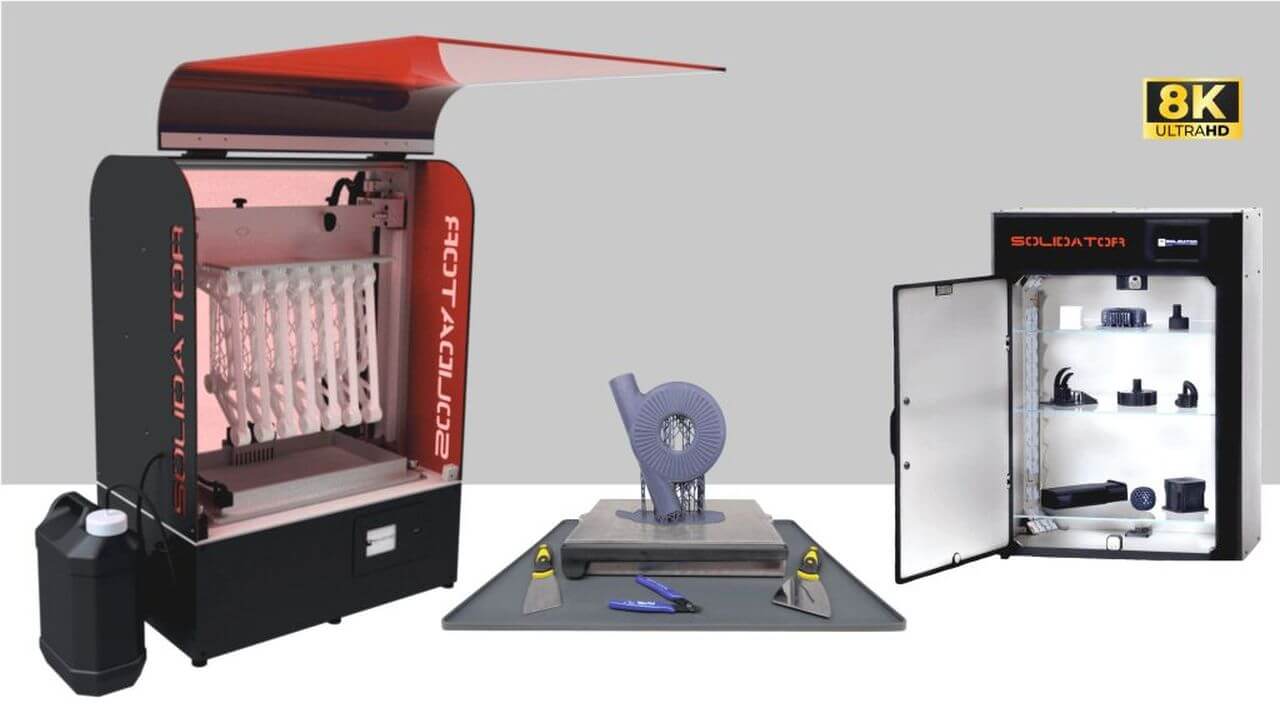 Mit einem umfangreichen Materialportfolio, das 19 verschiedene Resins umfasst, darunter Spezialitäten wie ESD-Resin und Hochtemperatur-Materialien, ist der Solidator 8K für verschiedene Industriezweige von der Automobilindustrie bis hin zur Zahnmedizin geeignet.
