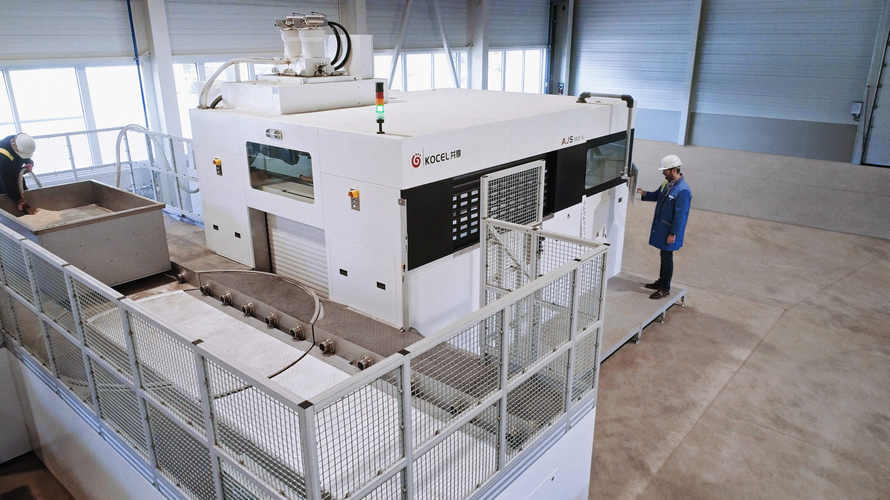 Bei dem 3D-Drucker, der in Traisen installiert wurde, handelt es sich um den Foundry Sand 3D Printer-AJS 2500A/2600A von Kocel Machinery, mit EU CE- und ISO 9001-Zertifizierung. Er ist mit einem Harzbindemittel-Rückgewinnungssystem für einen geringen Harzverbrauch ausgestattet und kann sowohl Neusand als auch recycelten oder wiedergewonnenen Sand für den 3D-Druck verwenden. Die fast 6 Meter langen und 6 Meter breiten 3D-Drucker wiegen zwischen 30 und 35 Tonnen. Es gibt sie mit einem Bauvolumen von 2500 × 1500 × 1000 mm bzw. 2600 × 2000 × 1000 mm. Die Maschine druckt 0,2-mm-Schichten und kann Quarzsand, Ceramsit-Sand mit Furanharz, Phenolharz und anorganische Harzbindemittel verarbeiten.