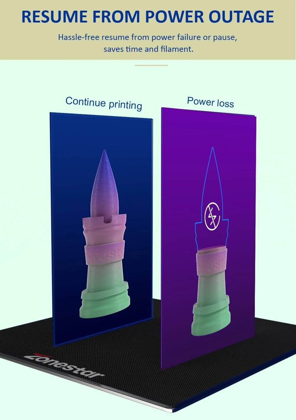 Erweiterte Funktionen: Der Drucker bietet fortschrittliche Funktionen wie Filamenterkennung, Druckfortsetzung nach einem Stromausfall und automatisches Nivellieren des beheizten Bettes, was den Druckprozess zuverlässiger und benutzerfreundlicher macht.