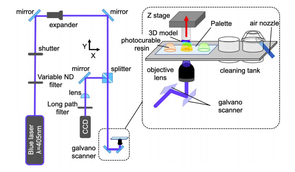Für seinen Prozess entwickelte das japanische Forscherteam ein zweistufiges Reinigungsverfahren. Eine Glaspalette wurde dazu auf einem linearen Translationstisch montiert, die mit einer Luftblaseinheit im zweiten Tank zum Trocknen der Materialien genutzt wurde. Auf der Glasplatte konnten mehrere Harztropfen und zwei Tanks mit Reinigungsmitteln gesichert werden. Die Tanks verhinderten jegliche Kreuzkontamination.
