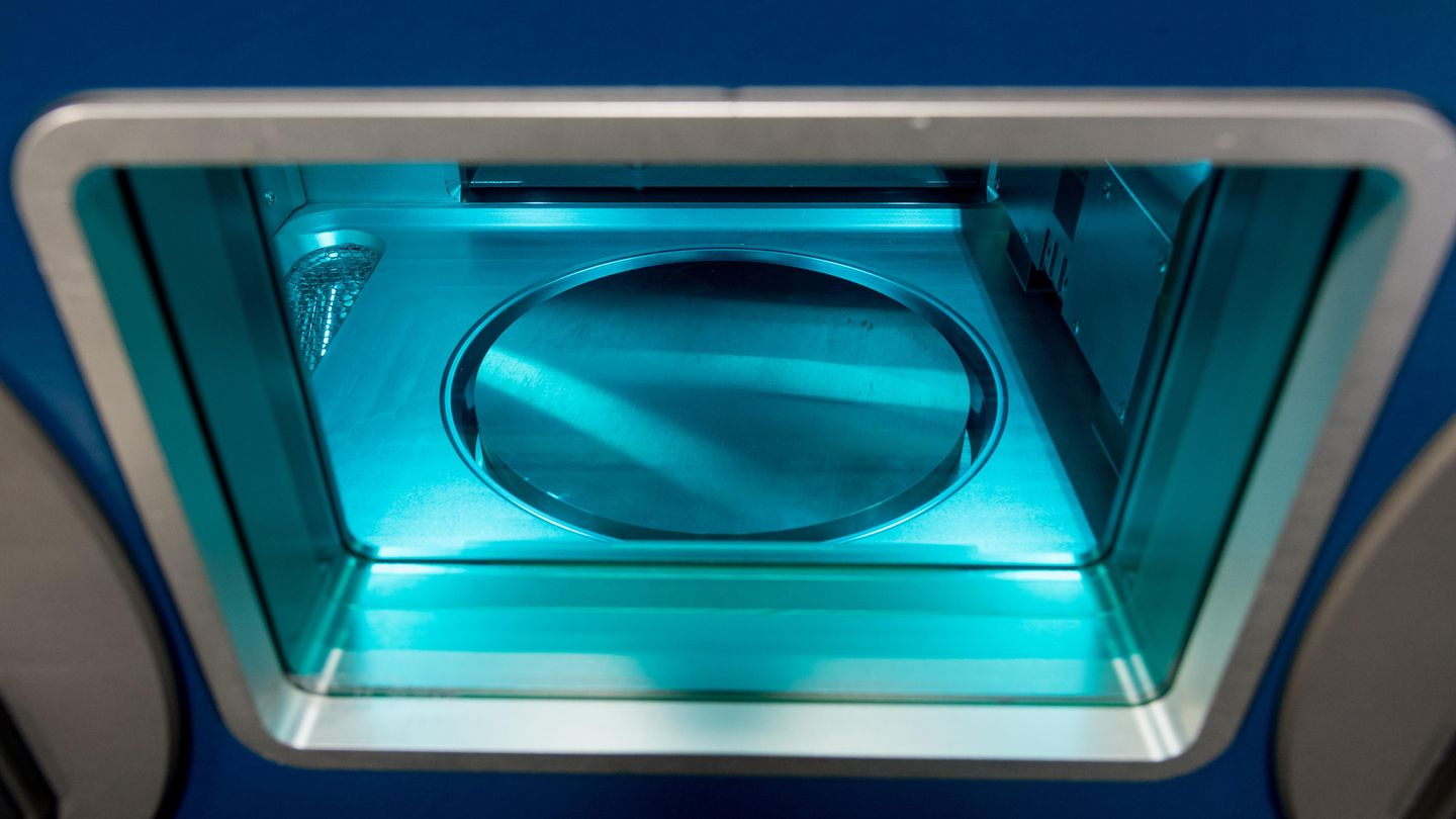 Beim Bauzylinder wechselt der Beschichter, der beim Druck das Pulver im Bauraum verstreicht, sein Auftragsmedium gegen einen von Trumpf entwickelten Wagen. Hier wurde ein Einsatz integriert, auf dem sich der Deckel befindet, wenn der Beschichter darüberfährt. Von den Trumpf Entwicklern wurde eine Lagerposition am Rand des Bauraums vorgesehen. Die Vorratszylinder fahren eigenständig nach oben und hängen die Deckel dabei an die Decke der Prozesskammer. Die Deckel befinden sich außerhalb des Laser-Scanfeldes und verbleiben bis zum Prozessende auch hier.