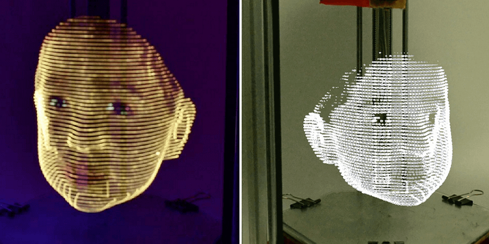 Ekaggrat Singh Kalsi hat an der Architektenschule der CEPT Universität in Ahmedabad, Indien studiert und ist nebenbei ein großer 3D-Druckenthusiast. Die Technik mit der 3D-Drucker schichtenweise ein Objekt herstellen, kam dem Architekten nur entgegen, als er entschied diesen Druckvorgang mit Licht auszuprobieren. Statt irgendeines Materials verwendet er LED-Lichter.