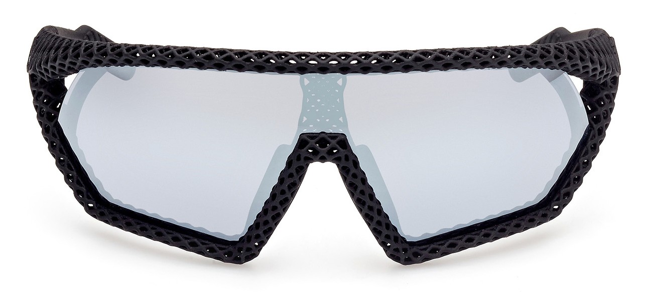 Die 3D-gedruckte Adidas-Sonnenbrille 3D-CMPT entstand gemeinsam mit der italienischen Marcolin Group. Sie verfügt über einen gitterartigen flexiblen Nylonrahmen und kommt in einem Stück aus dem 3D-Drucker. Die Beschichtung ist gummiartig. Rutschfeste Kontaktpunkte an den Nasenpads und an den Enden der Bügel sorgen für sicheren Halt.
