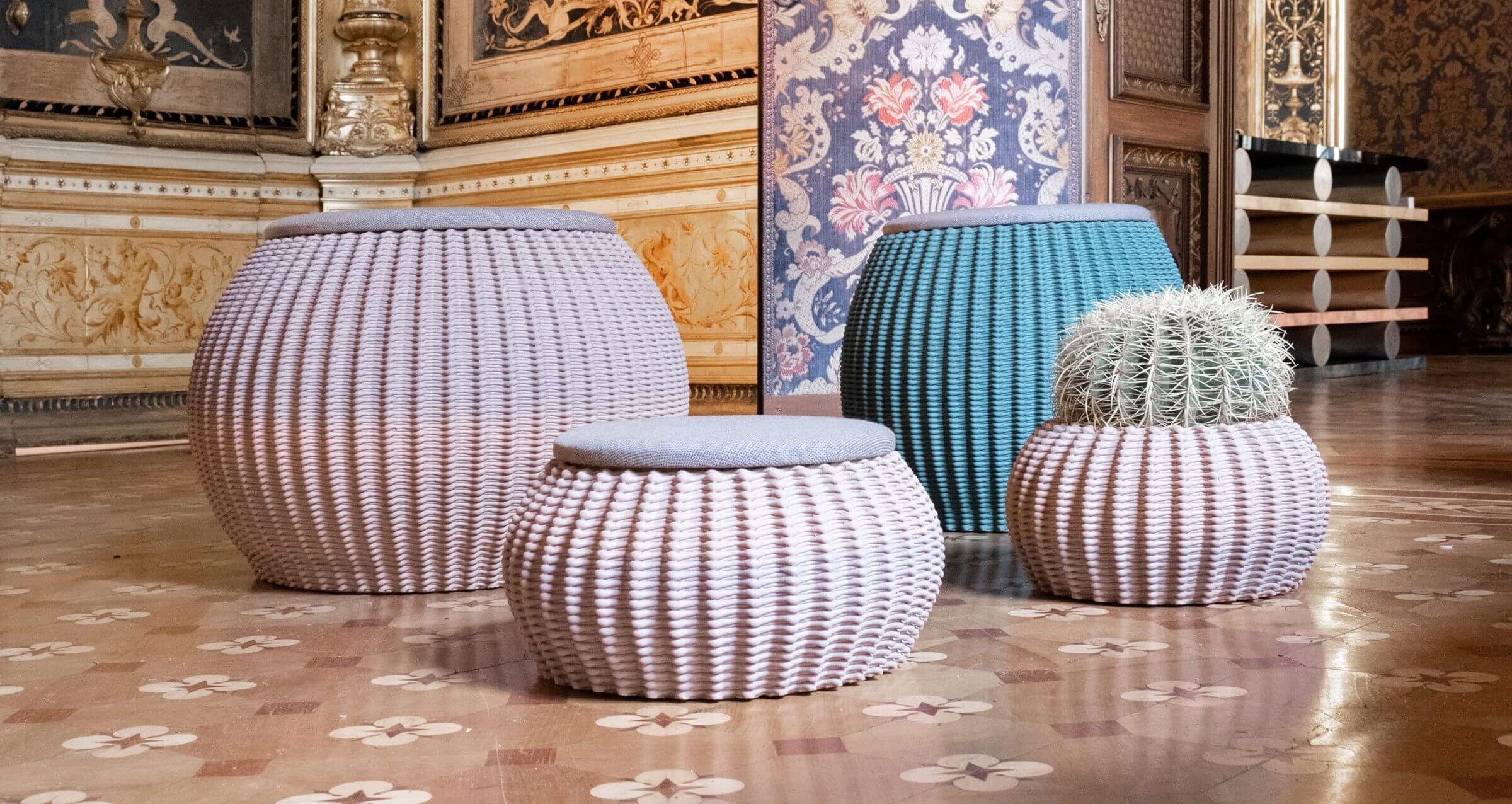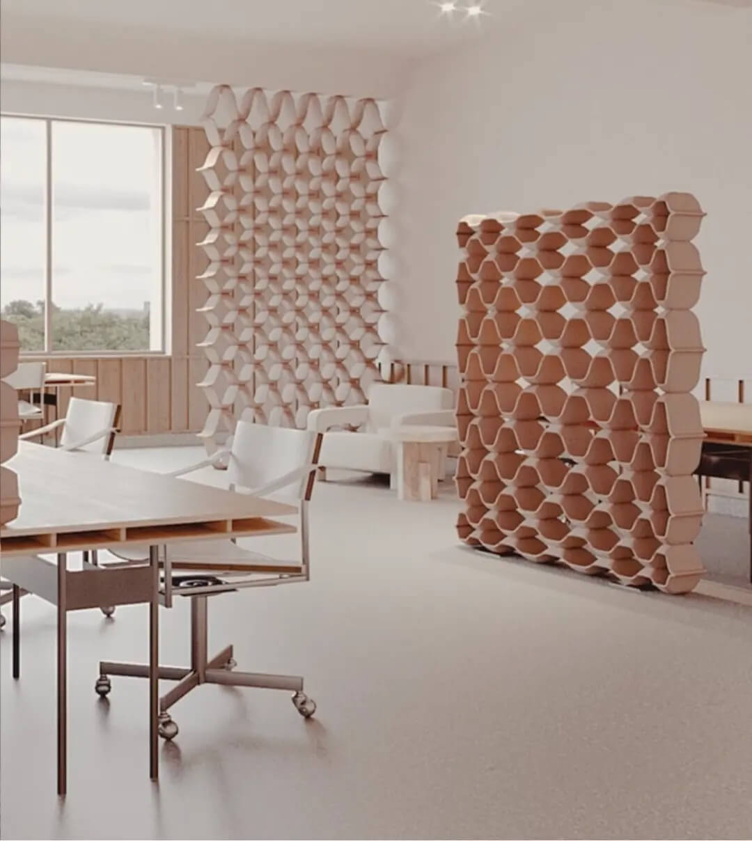 Auf der Mailänder Designwoche ist ein Teil der Hocker, Raumteiler und Pflanzengitter zu sehen. Sie gehören zur „Aectual Drink Carton“-Konzeptlinie, die den Second-Life-Wert des Materials für Arbeits-, Wohn- und Freizeitumgebungen demonstriert. Die matte, fast keramische Haptik des Materials wird durch das Hinzufügen warmer Erdtöne vertieft.