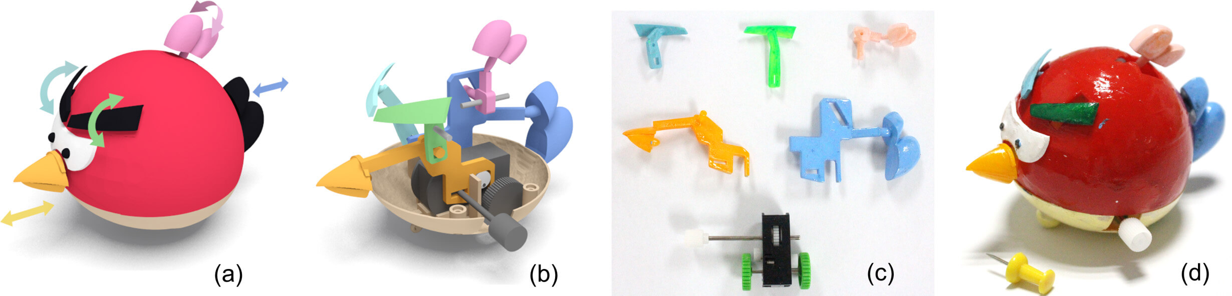 Mit ihrem neuen Computersystem machen die Forscher die Herstellung von Aufziehspielzeugen einfacher als je zuvor. Der leitende Forscher Dr. Peng Song, ein früherer Mitarbeiter der Universität für Wissenschaft und Technologie in China, meinte „Unser Ziel war es, ausdrucksstarke Spielzeuge mit beweglichen Teilen zu entwickeln, die nur wenig Energie verbrauchen.“ Um die Idee des einfachen, 3D-bedruckbaren Aufziehspielzeugs zum Leben zu erwecken, analysierten die Forscher elf elementare Mechanismen von Aufziehspielzeugen und modellierten deren Geometrie, kinematische Eigenschaften und Verbindungen.