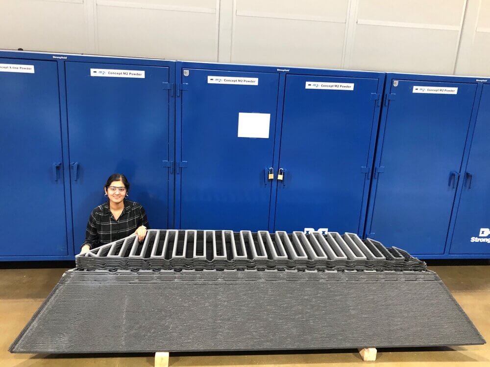 Der großtechnische Mehrmaterialdruck wurde durch Modifikationen der BAAM-Maschine sowie ein neues Extruder-Design erreicht, das ein Dual-Feed-System unterstützt. Laut Alex Riestenberg, Produktmanager für additive Fertigung bei CI, kamen beim Probedruck mehrere und recycelte Materialien zum Einsatz.