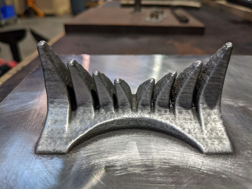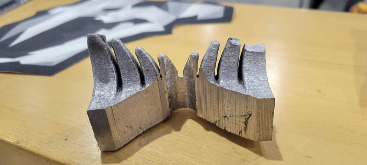 Melanie Lang von FormAlloy schlug vor, dass sie die Directed Energy Deposition (DED)-Metall-3D-Drucktechnologie nutzen. Die komplexe Geometrie des Frontgrills zu bearbeiten wäre schwierig und zeitaufwendig. Aus der CAD-Datei ginge dies jedoch in wenigen Stunden. Sie verwendeten hochfestes Aluminium 6061 RAM als Material. Es hält großer Hitze und den aggressiven Bedingungen in einem Kampf stand.