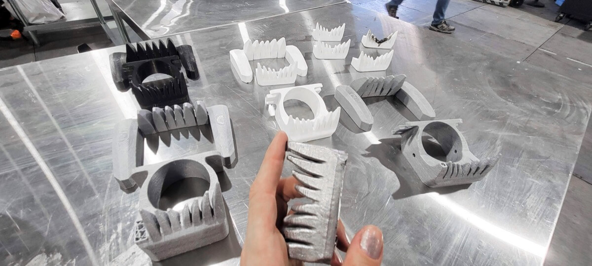 Eingeschränkte Designmöglichkeiten, Kostenbeschränkungen und andere Vorgaben machen den 3D-Druck zu einer sinnvollen Alternative. Einige Teams verwenden den Metall-3D-Druck bereits für ihre Bots. Das Team von Ghost Raptor beschloss mit Wipprecht, den kieferförmigen Frontgrill der neuen Flammerwerferwaffe des Ghost Raptors in 3D zu drucken.