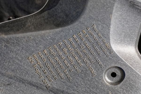 Aluminiumpulver wird beim selektiven Laserschmelzen durch leistungsstarke Laser geschmolzen. Dabei kann jede produzierte Komponente anders sein, da keine Werkzeuge benötigt werden. Das Laserschmelzen zeigt sich daher als die perfekte Wahl für eine solche Individualisierung. Die 3D-gedruckten Teile haben gleichzeitig eine sehr hohe Festigkeit, was bei rauen Bedingungen, wie sie bei der GS Trophy in Mongolei vorherrschen, ein Muss ist. Um mehr Oberflächenqualität und Kontrast zu schaffen, wurde ein zusätzlicher Fräsprozess verwendet. Die individualisierten Kühlerdabdeckungen wurden bei der Preisverleihung an die Teilnehmer der GS Trophy als Souveniere übergeben. Die 2350 km lange Reise fand vom 3. bis 10. Juni 2018 statt.