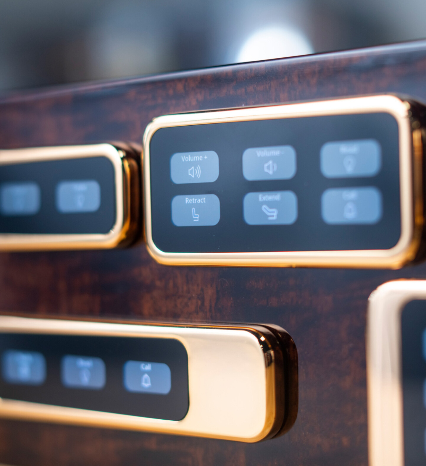 Das CMS-Team erklärte, dass es in einem Fall 100 Teile für ein Flugzeug in 3D druckte, unter anderem 20 Lichtschaltertafeln, ein Kabinenklimaregler und USB-C- und Drop-in-USB-A-Ladegeräte sowie Riegel, Entriegelungsknöpfe und verstellbare Touchscreen-Halterungen. Mit Inlays aus Goldmetallgalvanik oder Holzfurnier gelang ihnen ein luxuriöses Finish.