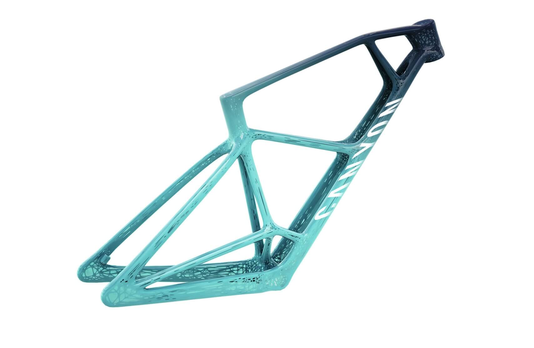 Der Rahmen und die Gabel des Ride Green Bikes von Canyon wurden aus recyceltem Aluminiumpulver ebenfalls im 3D-Druckverfahren hergestellt. Damit will Canyon die Gesamtmenge an Rohmaterial reduzieren, das bei der Herstellung des Rahmens eingesetzt wird. So verbessern sich die Umweltauswirkungen des Fahrrads und das Rahmengewicht wird gesenkt. Außerdem werden dadurch Leistungsvorteile erzielt. Das Rahmenskelett bildet die Struktur, die von einer Außenhülle umschlossen wird. Damit bietet es zusätzlichen Schutz und wünschenswertere Oberflächeneigenschaften.