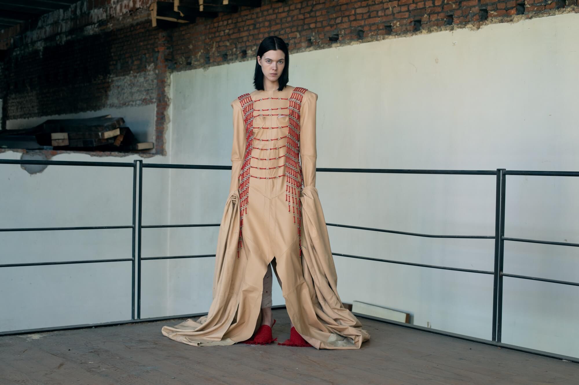Ihr Konzept wurde von Louise Bourgeouis‘ Give or Take-Skulptur und von Haute-Couture-Kleidern von Theaterdarstellerinnen der 1920er Jahre inspiriert. Das aus Hunderten von verketteten Miniaturskulpturen von Händen bestehende Kleid bildet eine Art Kettenhemd. Die gefesselten Hände spiegeln die weibliche Schönheit, betonen die Unterstützung und Abhängigkeit im Laufe der Geschichte und schaffen Raum für Diskussionen über die Kämpfe, mit denen Frauen im Laufe der Geschichte konfrontiert waren.