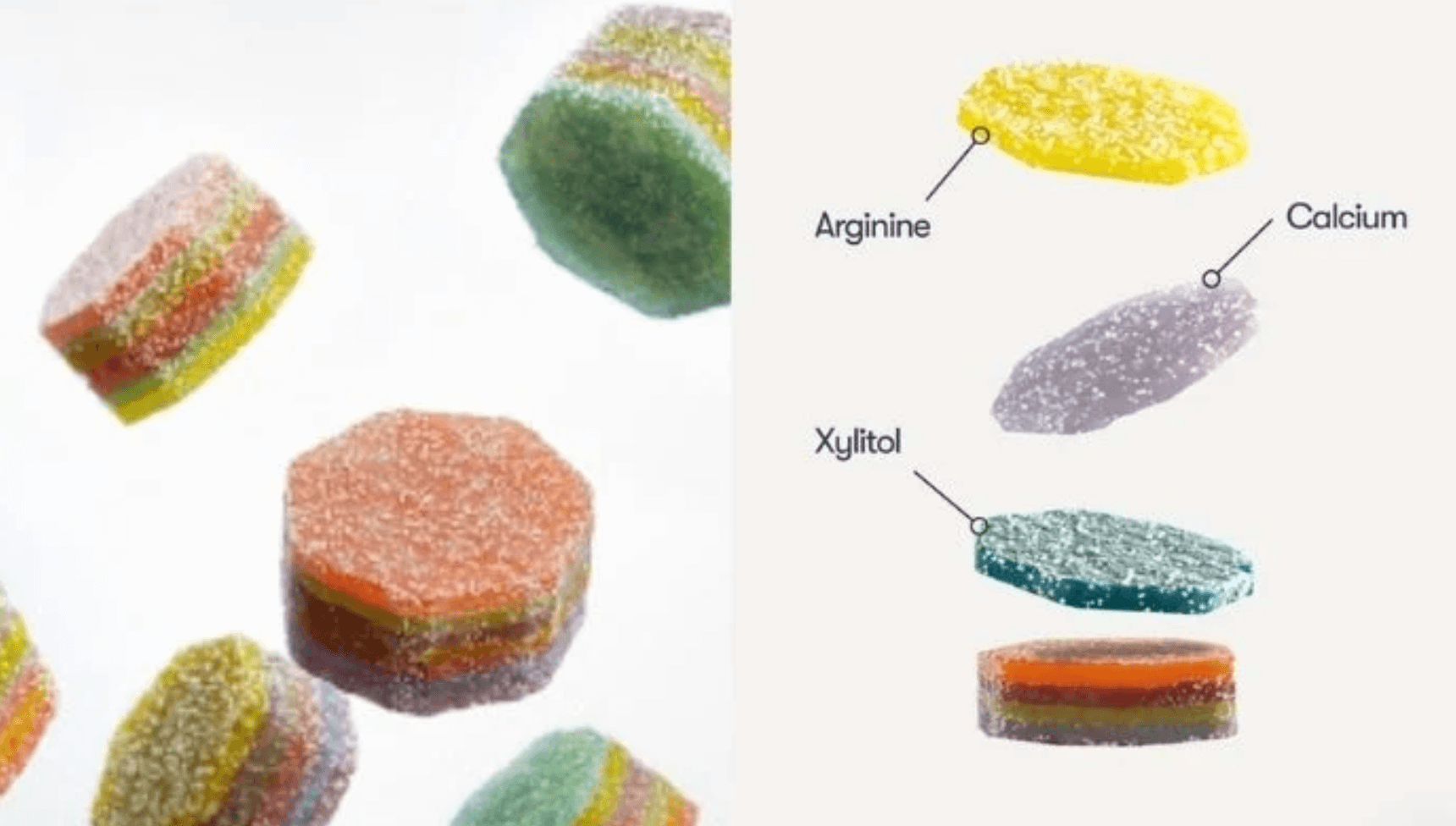 Nourish3D hofft, mit ihren Produkten für eine bessere Mundgesundheit bei Anwendern zu sorgen und „gleichzeitig Geist und Körper zu nähren“. Der Kauartikel Nutristacks soll jedoch nicht das tägliche Zähneputzen ersetzen, sondern einen zusätzlichen Mehrwert für die tägliche Mundhygiene bieten. Ähnlich wie bei Mundspülungen könnten Anwender damit spezielle Problemzonen angehen. Die Nutristacks setzen sich aus Arginin, Xylit, Vitamin B12, CoQ10 und Calcium zusammen. Zu den Zutaten gehören neben den Lebensmittelzusatzstoffen essenzielle Vitamine wie Kalzium, das wichtigste Mineral im Körper.