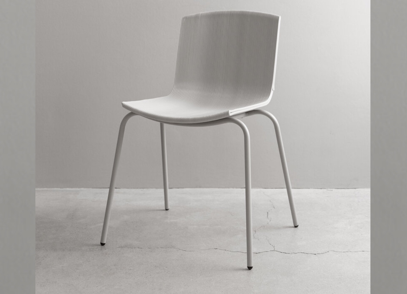 Zusammen mit der Wohltätigkeitsorganisation „Krishechki Dobroty-Projekt“, die Menschen mit besonderen Bedürfnissen unterstützt, sammelten Delo und das EBURET Studio Reste von Fabriken, die Joghurtbecher für russische Supermärkte herstellen. Das Material wurde zu kleinen Plastikstückchen verarbeitet und anschließend in die gewünschte Form in 3D gedruckt. Der fertige Stuhl besteht aus zwei Teilen: einer bequemen Sitzfläche und dem Metallgestell, die mit Hilfe von Schrauben verbunden sind. Beide Teile können recycelt werden. Delo plant, mehr Farbe in das Projekt zu bringen.