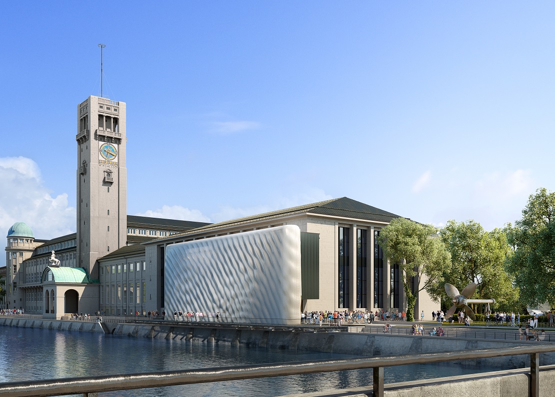 Der provisorische Eingang würde aus dem wiederverwendbaren wie lichtdurchlässigen Kunststoff PETG gefertigt sein und soll 4,5 Jahre stehen bleiben. Wie Generaldirektor Wolfgang M. Heckl erklärte, würde die wellige Struktur an einer Wasseroberfläche erinnern.