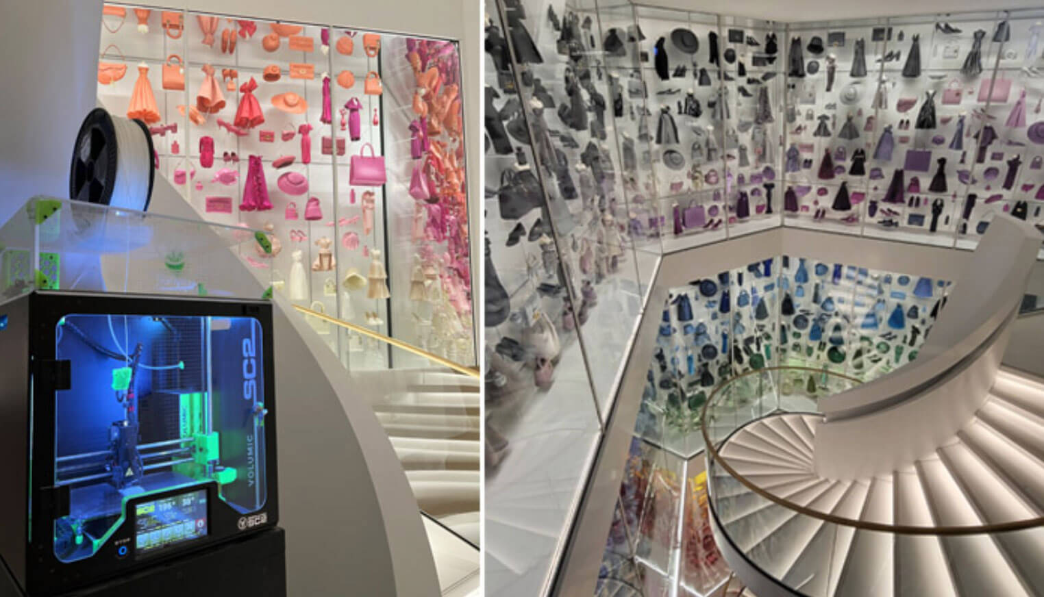 Die Agentur Alighieri und FERME 3D © setzten abschließend die 3D-gedruckten Repliken in der Avenue Montaigne 30 in Paris zusammen. Die 3D-gedruckten Objekte wurden dabei mit echten Haute-Couture-Miniaturkleidern gemischt, die von spezialisierten Werkstätten entworfen wurden. Das farbenfrohe und harmonische Ergebnis verleiht dem Ganzen seinen Charme und seine Identität. In den Fenstern rund um die Treppe befinden sich 1.874 Stücke, darunter 452 Kleider. Zu sehen ist außerdem das berühmte Kleid, das Lady Di 1996 bei der Met Gala trug. Was sich ansonsten noch in der Modewelt in Sachen 3D-Druck tut, lesen Sie in unserer Kategorie: Kleidung aus dem 3D-Drucker.
