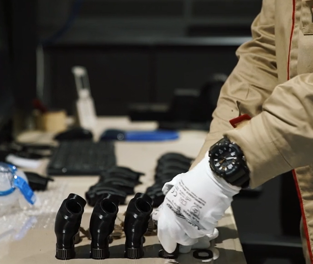 Wo sonst Prototypenfahrzeuge entstehen, werden im Moment im Maranello Werk thermoplastische Ventile und Formstücke im 3D-Drucker hergestellt. Um COVID-19-Patienten das Atmen zu erleichtern, lassen sich Schnorchelmasken im Vollmaskenstil mit 3D-gedruckten thermoplastischen Ventilen zu Masken umwandeln, die beim Atmen helfen. Mares, ein Hersteller von derartigen Schnorchelmasken, hilft Ferrari beim Designprozess. So wird gewährleistet, dass das Ventil auf das Produkt passt.
