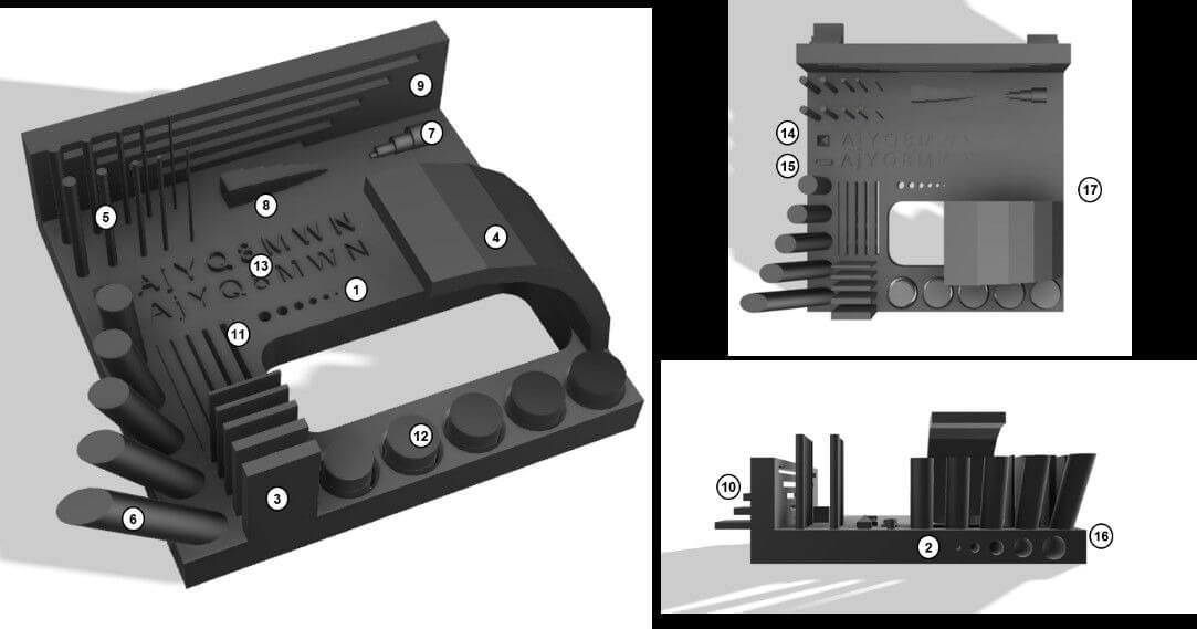 Das Referenzbauteil enthält unterschiedliche nachprüfbare Geometrien, die auf Basis der VDI-Richtlinie 3405 3.2 (Entwurf) entwickelt wurden. Dazu gehören Prüfgeometrien, zu denen minimale Neigungswinkel freistehender Wände gehören oder minimale senkrechte Lochdurchmesser. Das Referenzbauteil hat eine Grundfläche von 70 x 70 mm². Es wurden 17 Prüfgeometrien integriert. Es soll vor allem bei der Materialextrusion helfen, bei der ein erwärmter Kunststoff durch eine Düse gefördert und schichtweise abgelegt wird.