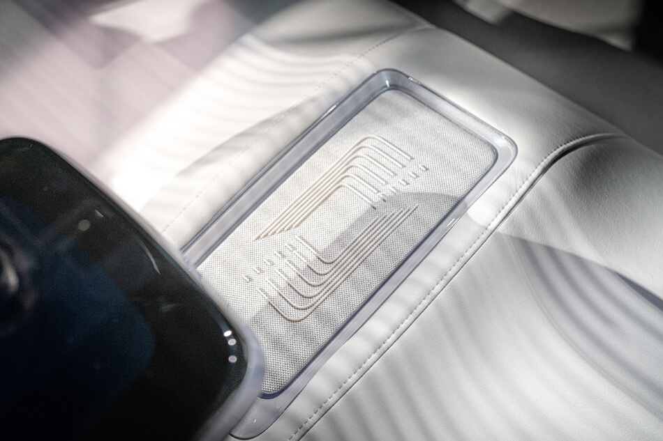 Designer können mit dieser Technologie mehr als 600.000 einzigartigen Farben mit verschiedenen Shore-Werten auf Textilien in 3D drucken und unterschiedliche Texturen und Oberflächen simulieren. Nachdem die Anwendung für Modebekleidung sofort auf der Hand lag, hat sich die Innenausstattung von Fahrzeugen zu einem wichtigen Bereich für Designer entwickelt, in dem sie einzigartige Ergebnisse erzielen können, die auf andere Weise nicht realisierbar sind. Auf den hinteren horizontalen Rückenlehnenflächen aus Alcantra wurden die Grafiken mit einem 3D-Drucker J850 TechStyle direkt auf die Mikrofasern gedruckt, mit Materialien, die den zugelassenen Standards entsprechen.