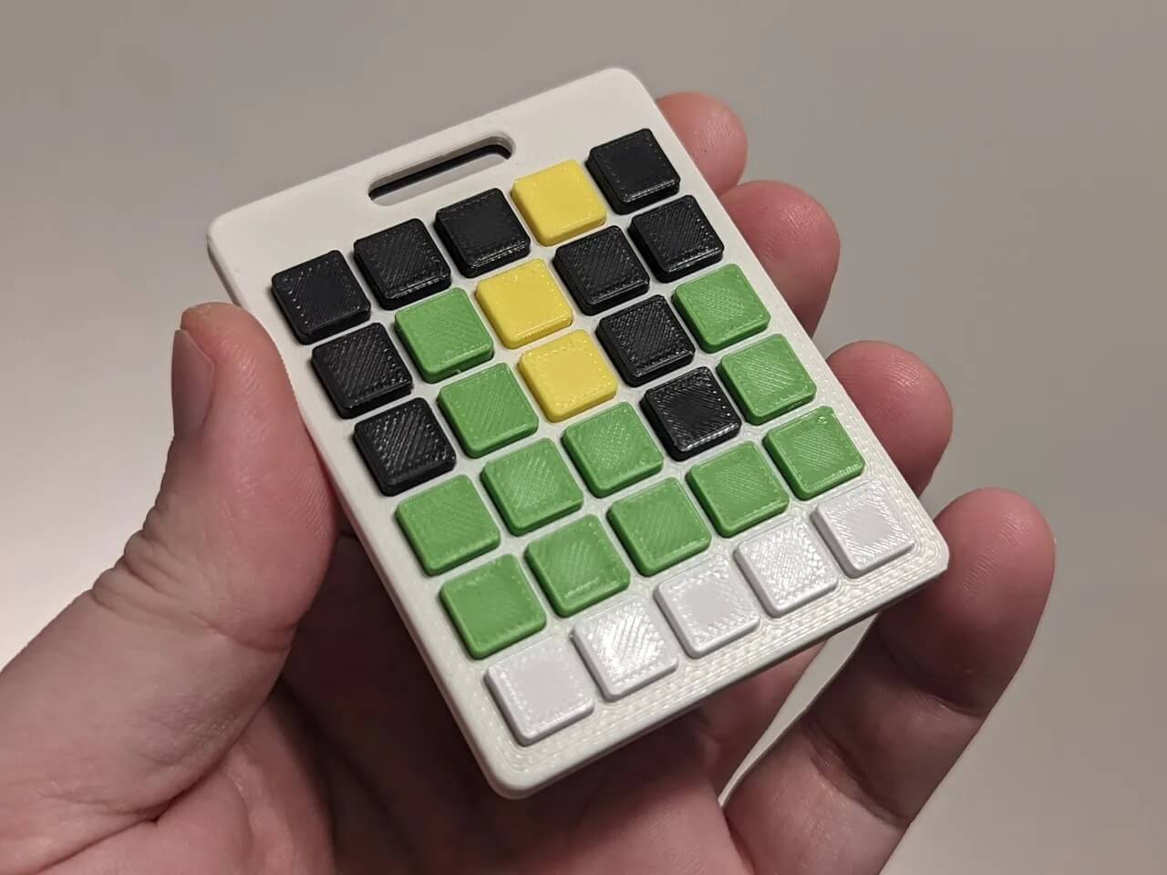 Im Jahr 2021 erschien das kostenlose Online-Buchstabenspiel Wordle. Ein Benutzer des Online-Repositorys für 3D-Modelle Prusa Printers hat jetzt ein 3D-druckbares Modell entworfen mit dem Online-Spieler ihren Wordle Score anzeigen können. Mit der kostenlosen 3D-Druckvorlage von kriswillcode erhalten Wordle-Fans alle erforderlichen Teile, um ihr Ergebnis auf ein Schlüsselband zu stecken und es für alle sichtbar zu tragen.