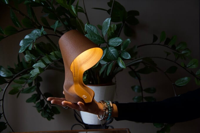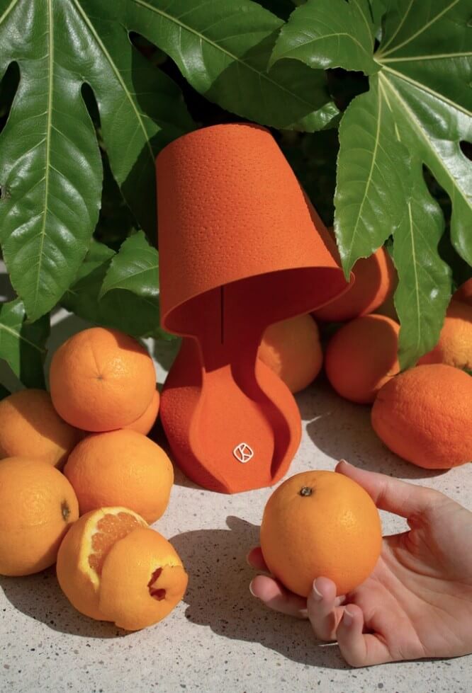Beim Entwurf von Ohmie hat Krill Design auf Vorteile in Bezug auf Design, Materialeinsparung und vollständige Vermeidung von Produktionsabfällen geachtet. Das Biopolymer, das sie für die Lampe „Ohmie“ verwenden, besteht aus Orangenschalen, denen fermentierte Pflanzenstärke zugesetzt wird. Das Material ist biologisch abbaubar und vollständig kompostierbar. Krill Design mischt die Orangenschalen und eine biopolymere Basis zu einem samtigen und robusten Material. Im Vorjahr haben wir das Projekt BARBARA, das umweltfreundliche Biokunststoffe für den 3D-Druck aus Zitronenschalen entwickelt, vorgestellt.