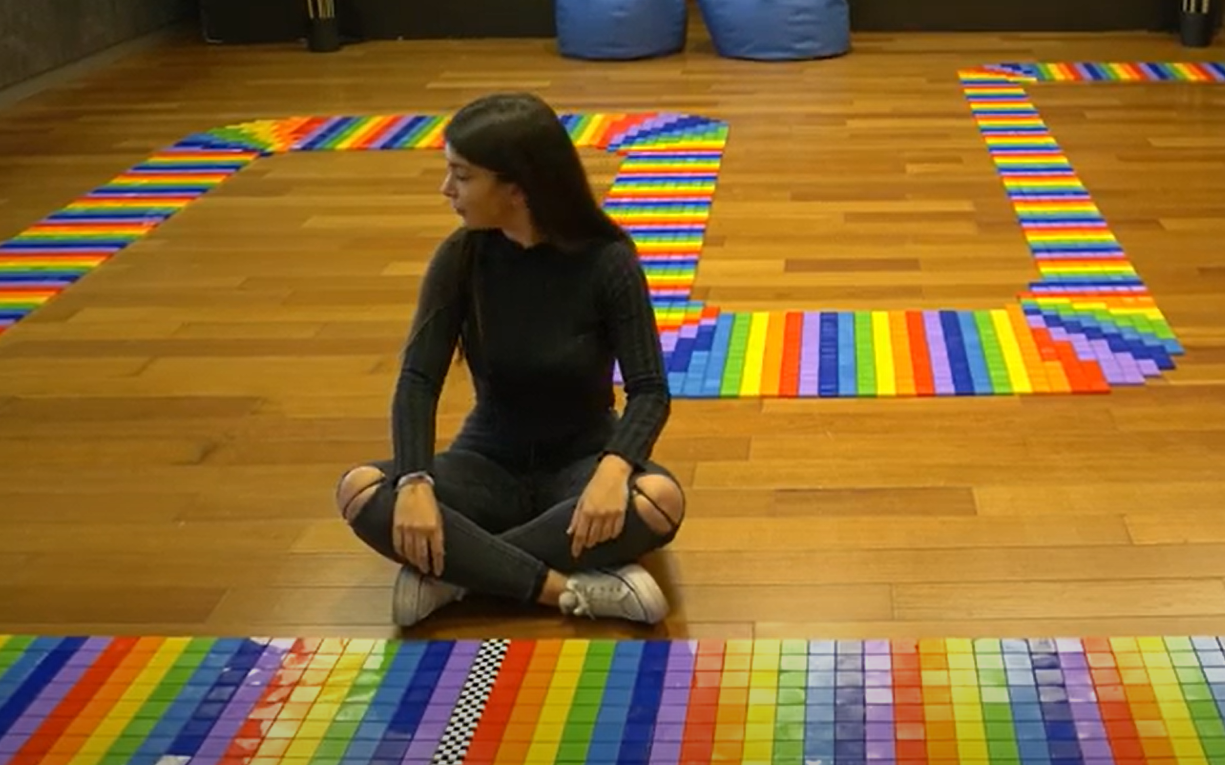Da farbenfrohe Ergebnis bestand aus mehr als 4.400 Teilen. Die 5 x 5,4 Meter lange Strecke ist ein echter Hingucker. Nachdem die Teile alle passend zu einer Strecke zusammengesteckt waren, durfte eine Testfahrt natürlich nicht fehlen.