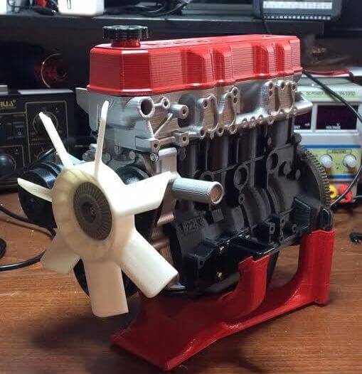 Auf der 3D-Druck-Plattform Thingiverse hat der Autofan Eric Harrell seine 3D-Modell-Dateien zur Fertigung eines Toyota 4-Zylindermotors 22RE veröffentlicht. Der Motor besteht aus insgesamt 80 Einzelteilen. Die 3D-Modellierung des Designs beanspruchte insgesamt 60 Stunden. Für den 3D-Druck des Motors wurden über 72 Stunden investiert.