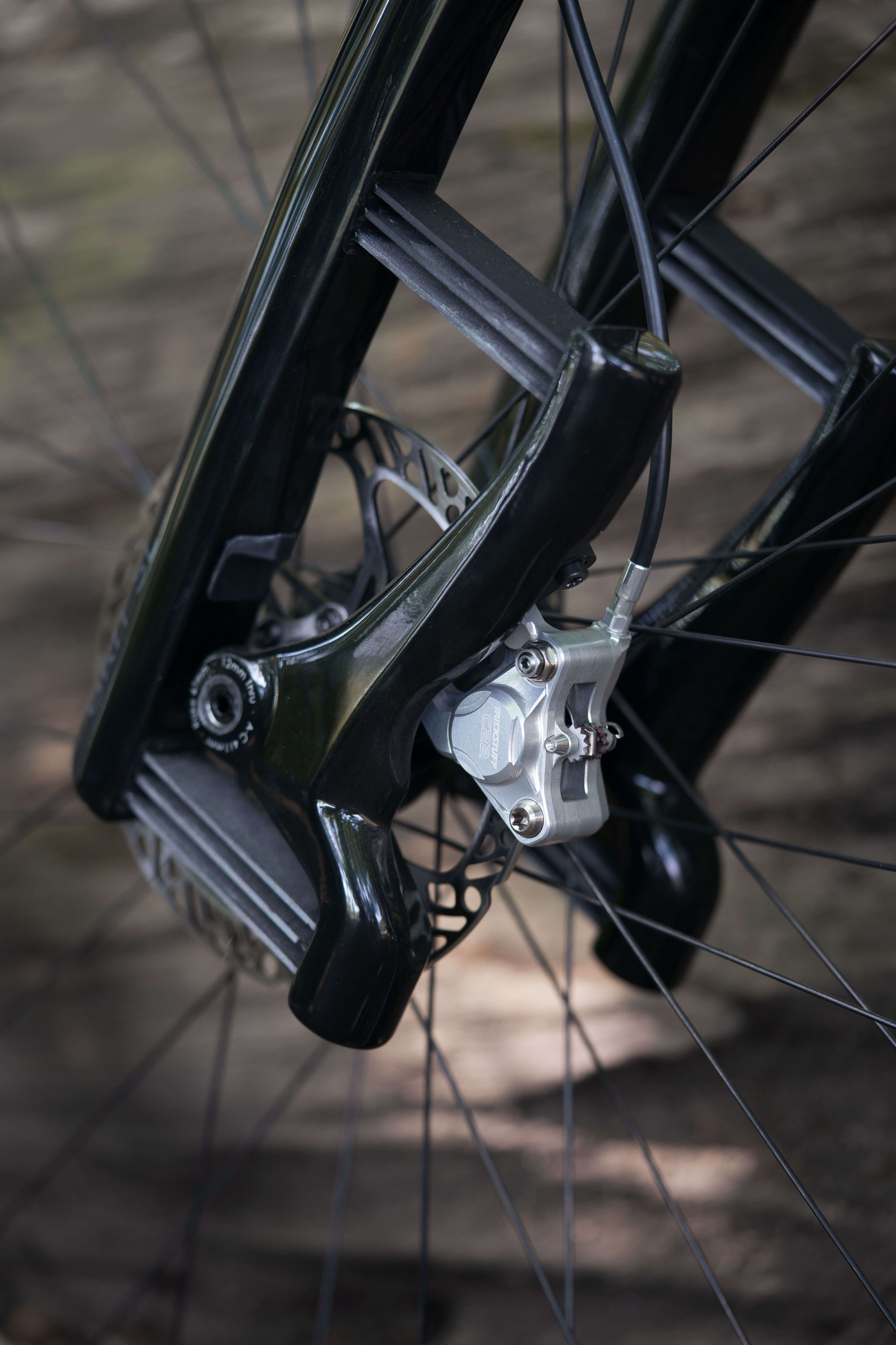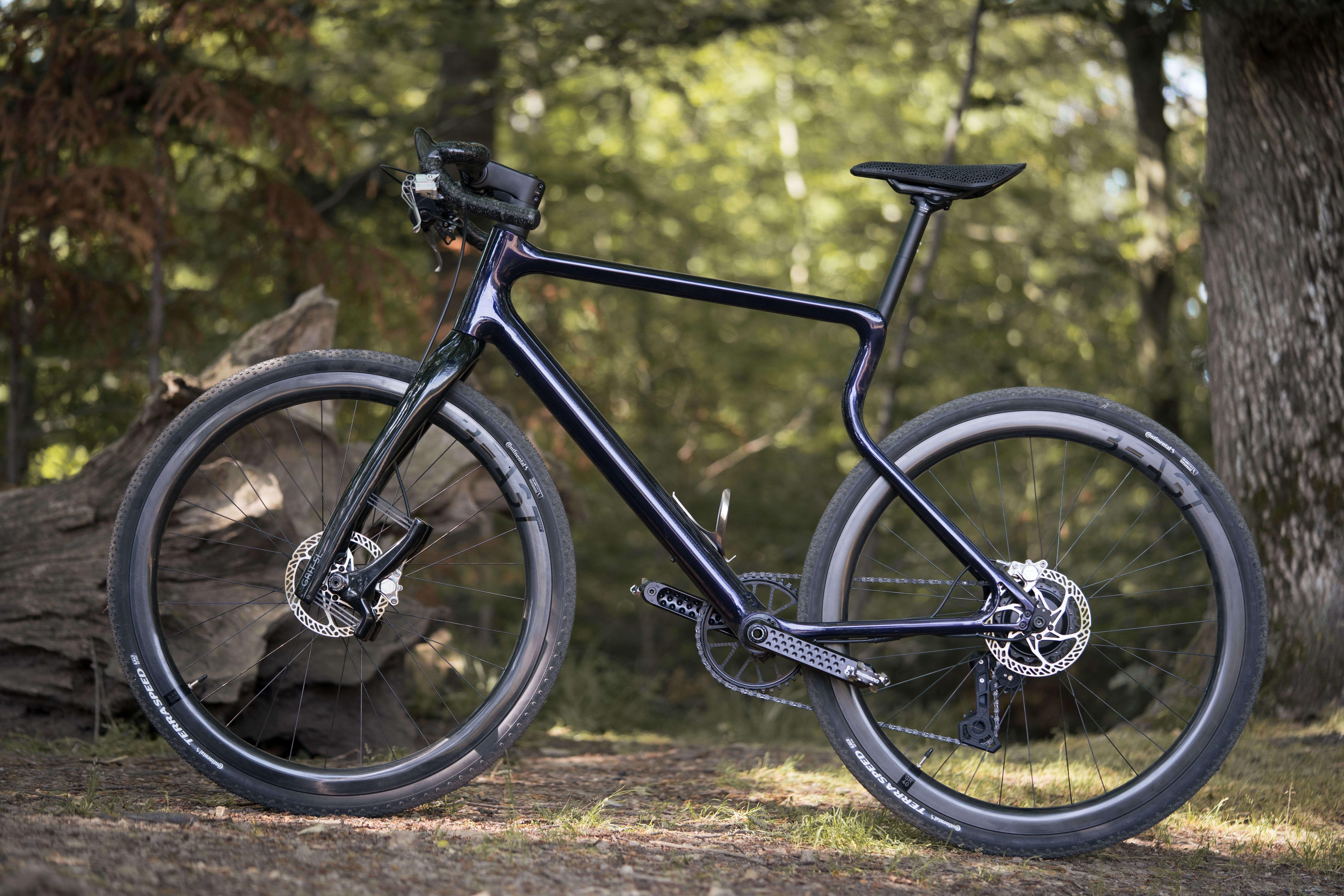 Der Einsatz des 3D-Drucks spielt eine entscheidende Rolle bei der Gestaltung des Fahrrads. Der Softride-Rahmen von URWAHN ist aus dem 3D-Drucker entstanden und besteht aus Stahl in einer organischen Monocoque-Optik. Eine weitere Besonderheit ist der 3D-gedruckte Bremshebel von Trickstuff, der mit dem C22 FM Bremssattel und einem neuartigen Flatmount-Standard aufwartet.