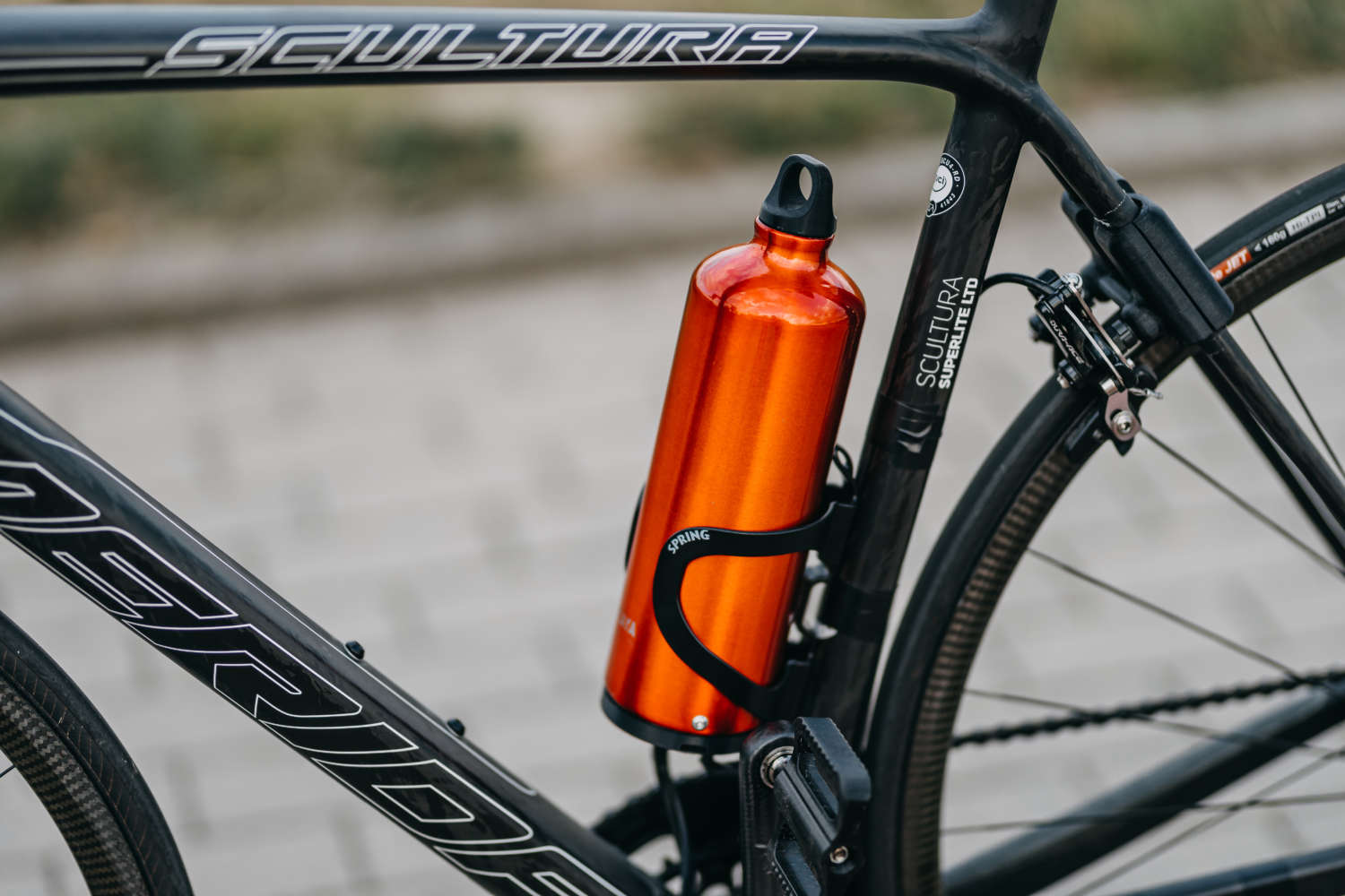 Das E-Bike eignet sich auch als normales Bike, da es ein ähnliches Gewicht wie ein normales Fahrrad hat. In einer handelsüblichen Trinkflasche liegen der Akku und die Steuerelektronik. Der E-Antrieb wird am Flaschenverschluss aktiviert, der so als An- und Ausschalter fungiert. Die aktuelle Software wird über den USB-Anschluss in der Flasche auf das Rad übertragen. Der Deckel wurde wie auch einige andere Bauteile mit dem 3D-Drucker hergestellt. Zu den 3D-gedruckten Teilen gehört zum Beispiel auch der Bremshalter.