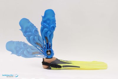 Die Inspiration für den Entwurf lieferte ein Oktopus, dessen Form die idealen Eigenschaften besaß. Der Körper bedeckt den oberen Teil der Prothese, während die Tentakeln die Form des Unterschenkels nachbilden. Am Knöchel wurde schließlich ein verkleinerter Taucherhelm angebracht, sodass über die seitlichen Öffnungen des Helms das Sprunggelenk betätigt werden kann.