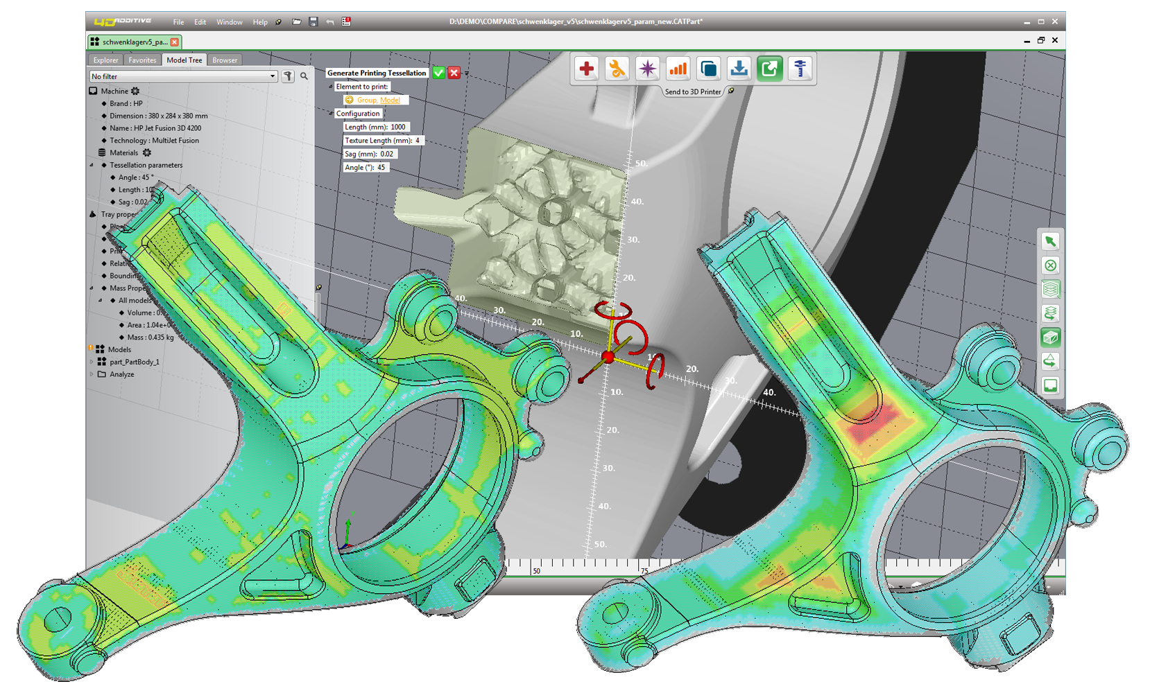 Die neue 4D_Additive Software vom Hersteller CoreTechnologie liest CAD-Daten aller gängigen Systeme wie Catia, NX, Solidworks, Creo, Inventor, STEP oder JT mit Fertigungsinformationen (PMI) und verarbeitet diese als exakte B-Rep-Geometrie. Der robuste CAD-Geometriekern ermöglicht die Prüfung, Reparatur und Vorbereitung der originalen Flächen bzw. Volumenkörper der exakten 3D-Modelle nach präzisem Engineering Standard. Andere 3D-Druck-Tools triangulieren CAD-Modelle beim Einlesen und wandeln sie in eine angenäherte, ungenaue STL-Beschreibung um. Eine Reparatur der Geometrie führt zu größeren Formabweichungen vom Original. Mit dem exakten Geometriekern von 4D_Additive bleibt das CAD-Modell laut dem Hersteller bis zum Schluss auf Basis der originalen Geometriebeschreibung.