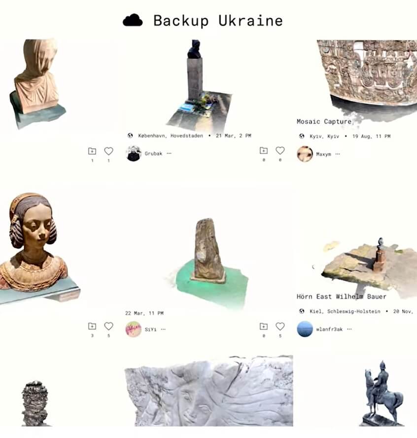 Die ukrainische Bevölkerung wurde am 24. Februar 2022 von einem Angriffskrieg durch Russland überrascht. Neben den drohenden zivilen Opfern sind auch zahlreiche Kulturgüter in Gefahr, zerstört zu werden. Das Projekt Backup Ukraine hat es sich deshalb zur Aufgabe gemacht, mit 3D-Modellierungstechnologie Kulturerbstätten zu bewahren. Mit dem 3D-Scan sind sie in der Lage, digitale Backups von Artefakten und Statuen zu erstellen, bevor sie durch Bomben dem Erdboden gleichgemacht werden.