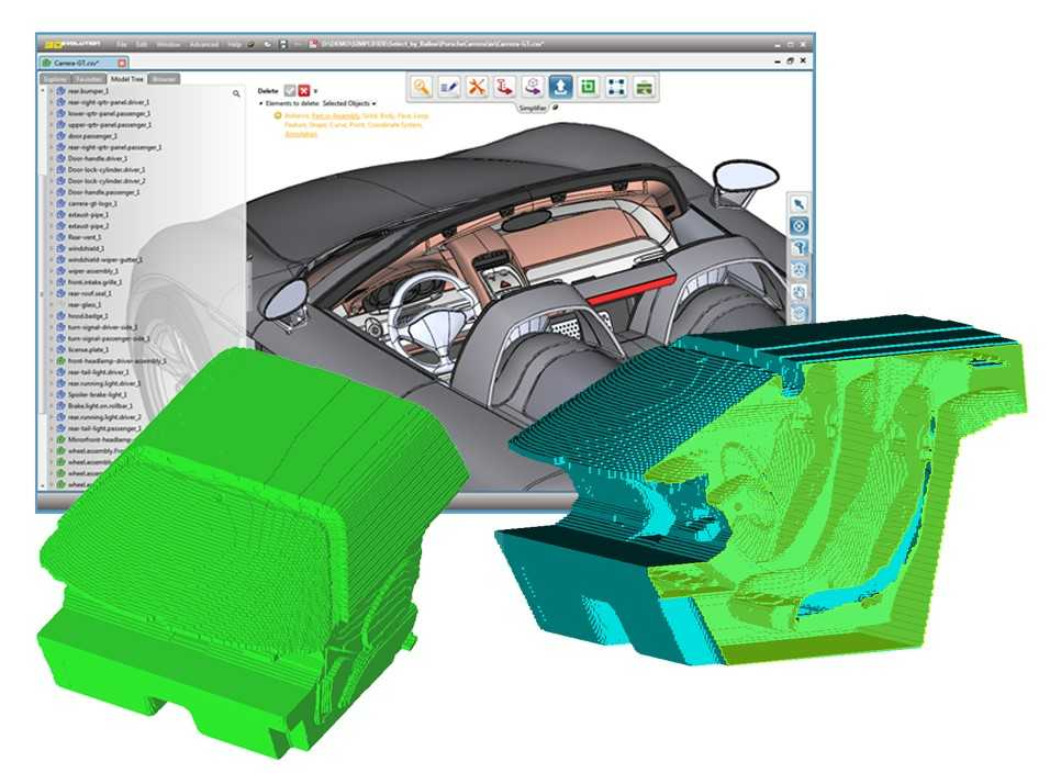 Der deutsch-französische Software-Hersteller CoreTechnologie hat neue Funktionen für das Tool „Simplifier“ der Software 3D_Evolution vorgestellt. Mit diesen können nun 3D Hüllgeometrien für die Datenreduzierung und Knowhow-Schutz erzeugt werden. Außerdem führt das neue Tool ab sofort die sonst sehr aufwendige Berechnung des Innenraumvolumens zur Ermittlung von Füllständen in Tanksystemen und anderen Raumvolumina bei komplexen Baugruppen wie Fahrzeuginnenräumen auf Knopfdruck durch. Das gab das Unternehmen dem 3D-grenzenlos Magazin in einer Pressemitteilung bekannt.