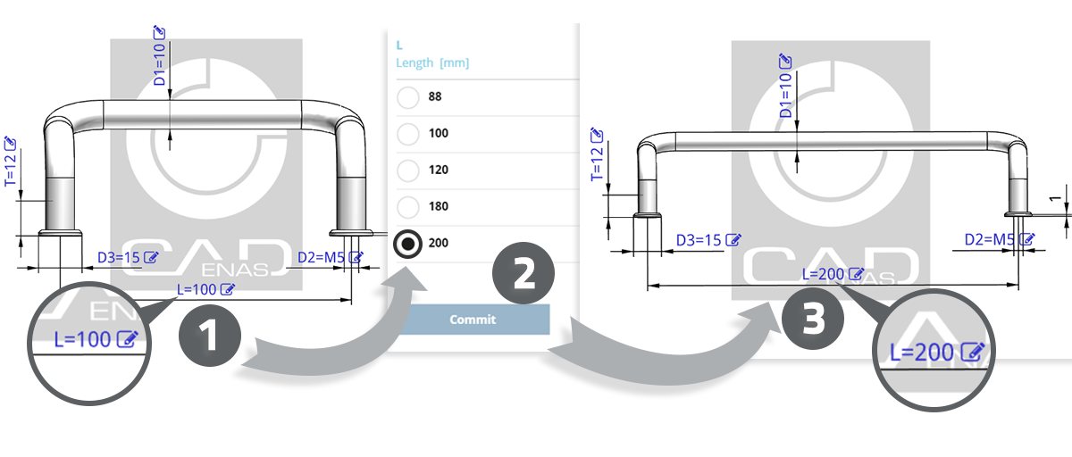 Auf eine Anpassung der Komponentenmaße innerhalb der Tabelle kann damit ab sofort verzichtet werden. Bauteile lassen sich vom Anwender noch einfacher und komfortabler konfigurieren. Die Maßänderungen sind gleich sichtbar und können auf ihre Richtigkeit überprüft werden.