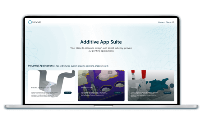 Die Additive App Suite von trinckle bietet innovative Design-Apps, darunter Lösungen für Roboterfinger, Schattenbretter und Vorrichtungen, und wird auf der Formnext 2024 vorgestellt (Bild © trinckle).