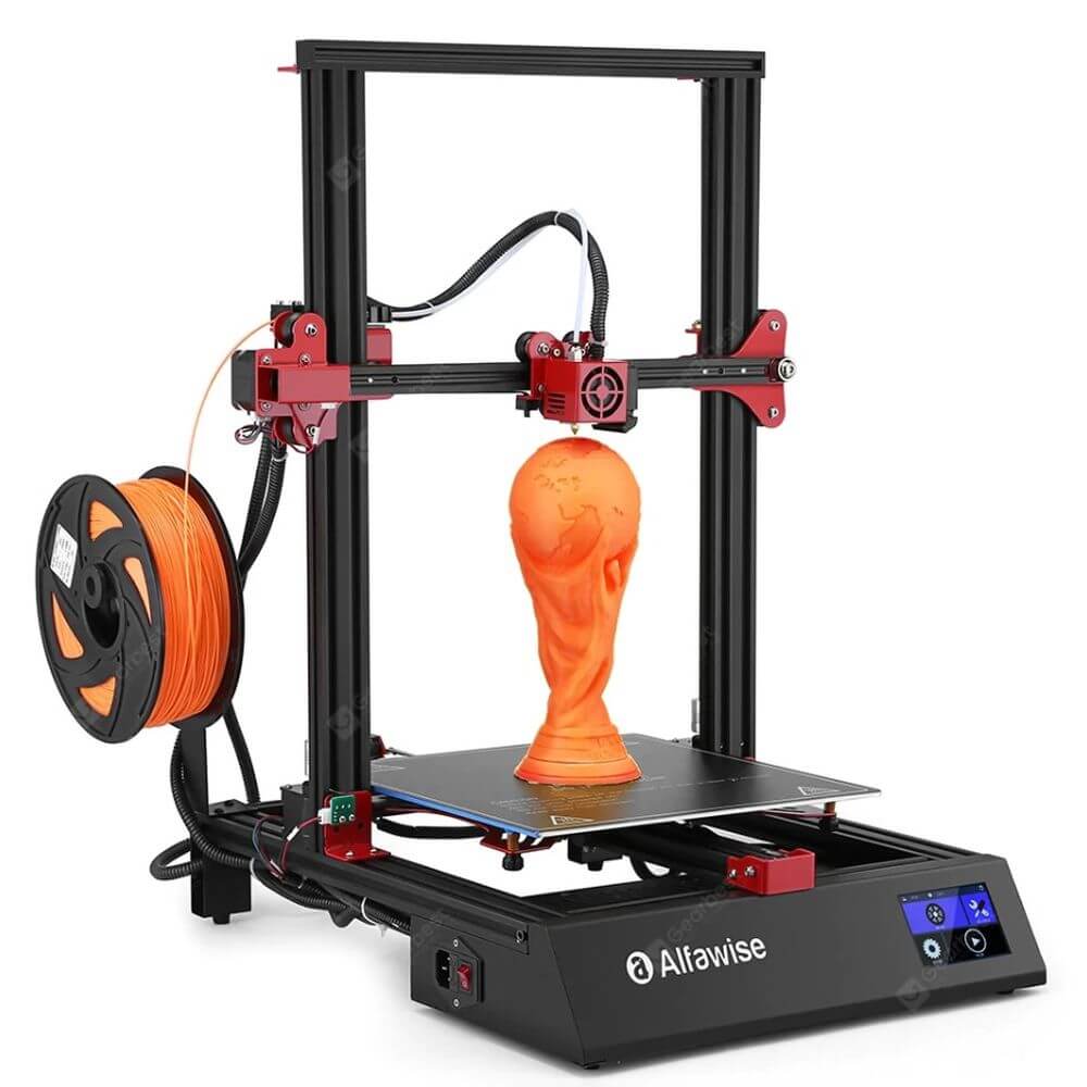 Der Alfawise U20 ONE 3D-Drucker ermöglicht bei einem Bauvolumen von 300 x 300 x 400 mm große und detailreiche Objekte. Der erste Aufbau ist sehr einfach. Selbst Anfängern gelingt dieser in wenigen Minuten. Das LCD-Display führt den Anwender intuitiv durch alle Möglichkeiten. Die doppelte Z-Achse und die beiden Motoren sorgen für Stabilität und erleichtern die Nivellierung. Bei Stromausfall oder unerwartetem Ende des Filaments kann der 3D-Drucker fehlerfrei den Druck später fortsetzen. Bedienelement und Steuerung befinden sich direkt am 3D-Drucker und brauchen keinen Platz zusätzlich. Der Alfawise U20 ONE eignet sich für Profis als Zweitgerät und auch für Anfänger. Weitere Infos zum 3D-Drucker gibt es in unserem Testbericht.