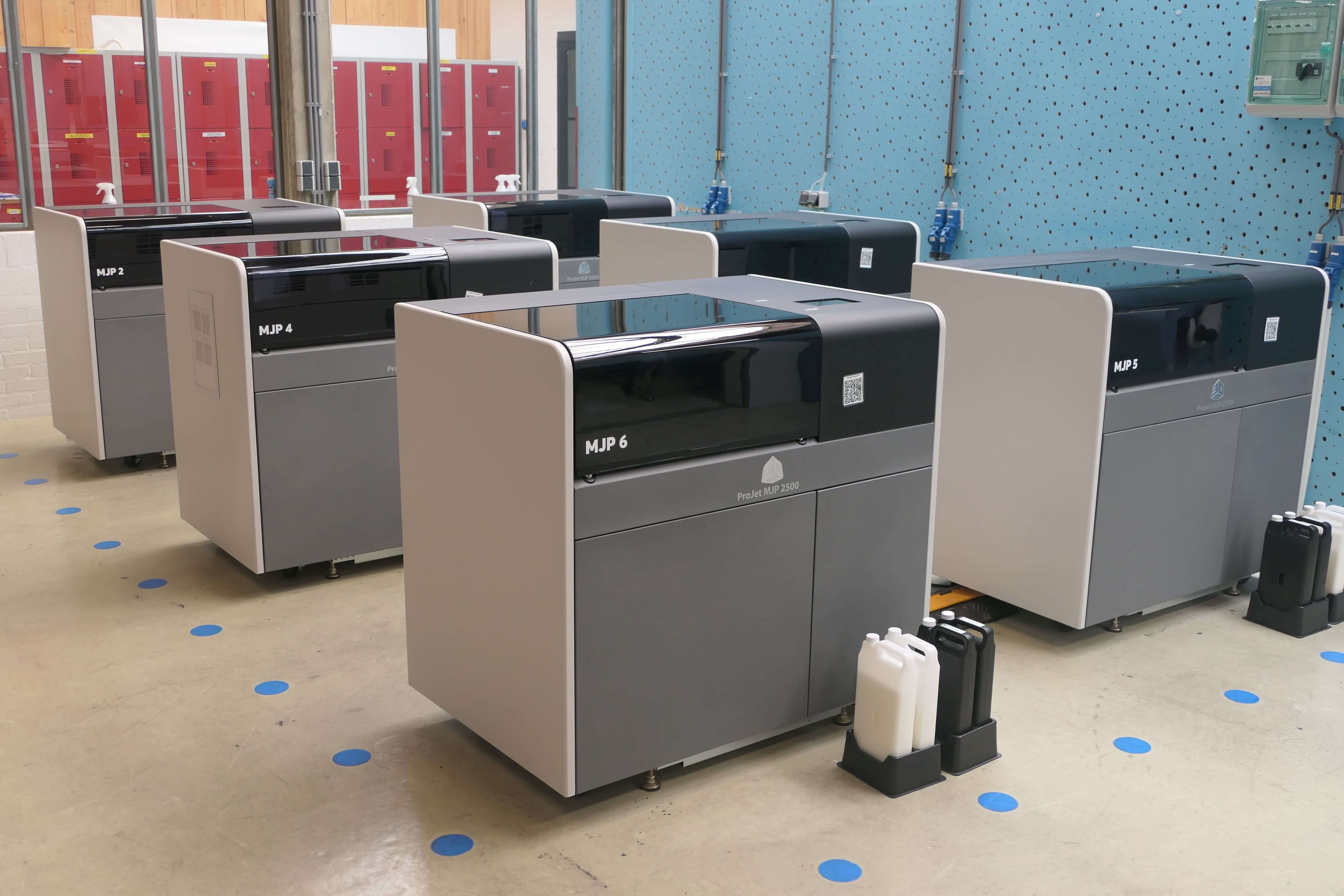 Eine Reihe von 3D-Druckern im Werk von Manuevo in Eindhoven, das nun unter dem neuen Namen operiert. Nach der Übernahme der Shapeways-Vermögenswerte wird die Fertigung am 5. August wieder aufgenommen. (Bild © Manuevo)