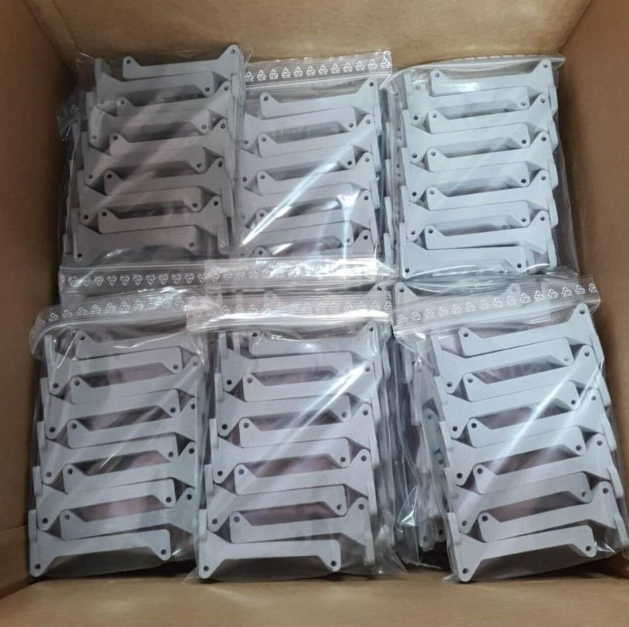 Karton mit vakuumverpackten Bauteilen aus dem 3D-Druck bei Laser Modeling Israel