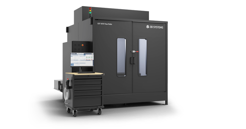Laut 3D Systems bieten die 3D-Drucker der Marke EXT Titan Pellet eine bis zu zehnfache Verringerung der Materialkosten und eine größere Auswahl funktionaler Materialien, was bei der Produktion großer Teile Kosteneinsparungen und hohe Druckgeschwindigkeiten ermöglicht. Kunden können den EXT Titan Pellet mit Doppel-Pelletextrudern und Filamentextrudern aufrüsten oder sich für den Einbau eines CNC-Frässpindel-Werkzeugkopfes entscheiden. Die hochpräzise 3-Achsen-Spindel erlaubt eine hochpräzise Oberflächenbearbeitung, die sich auf hohe Oberflächengüte und Maßgenauigkeit konzentriert.